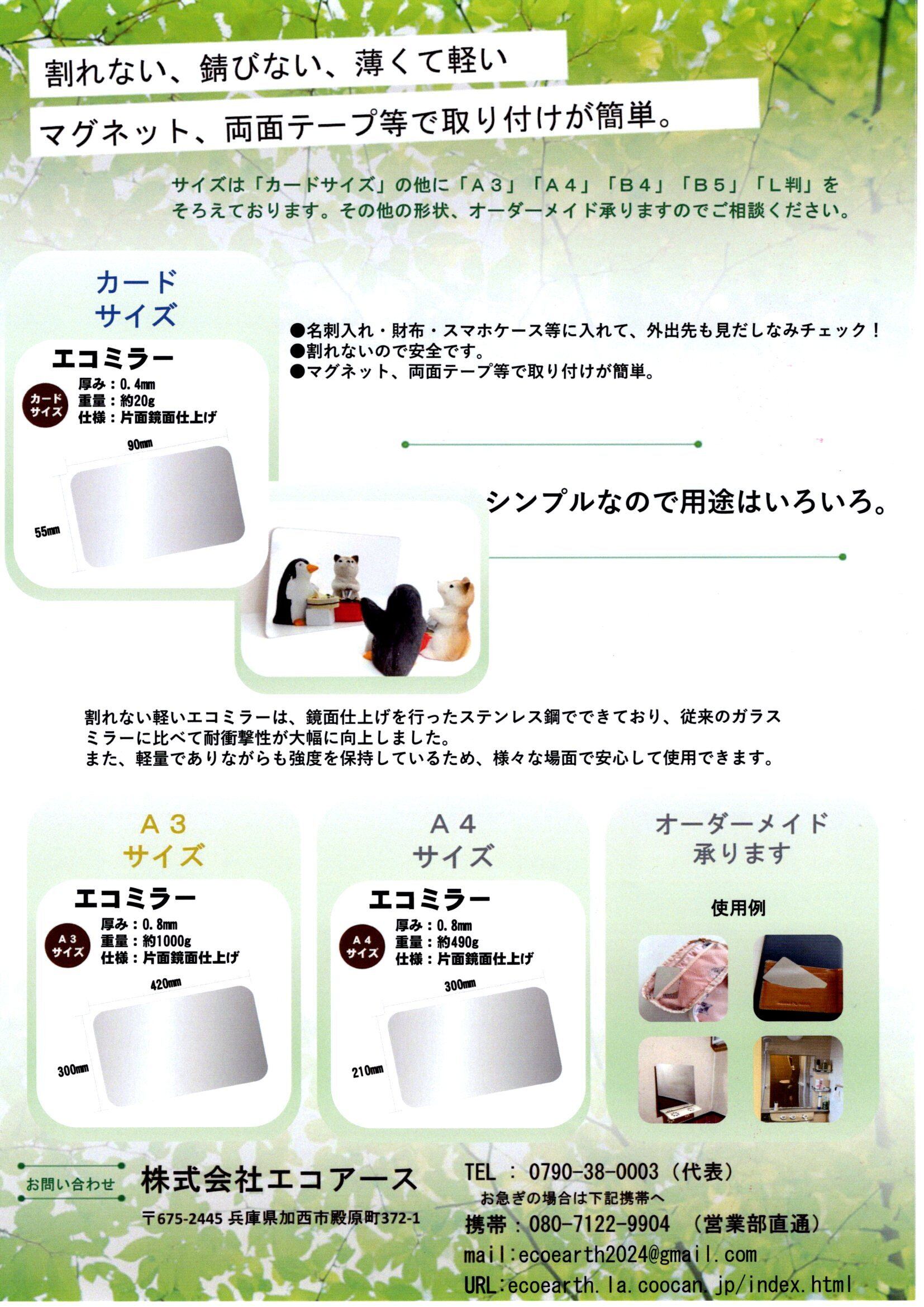 【ゆうパケット 送料無料】ステンレス製カードミラー【ECO MIRROR】兵庫県太子町『ぼうじぃ』カードサイズ コンパクトミラー 軽量 手鏡 おしゃれ スマホ 旅行 アウトドア | ecoshop2024
