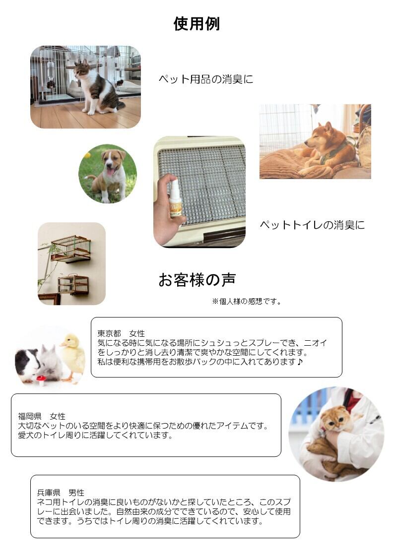 この消臭剤は、天然由来の成分を使用しており、ペットにやさしい安全な製品です。使用することで、気になるニオイをしっかりと消し去り、清潔で爽やかな空間を提供します!